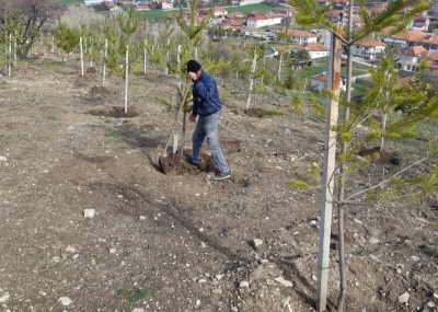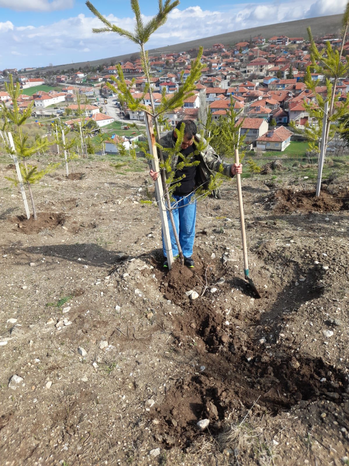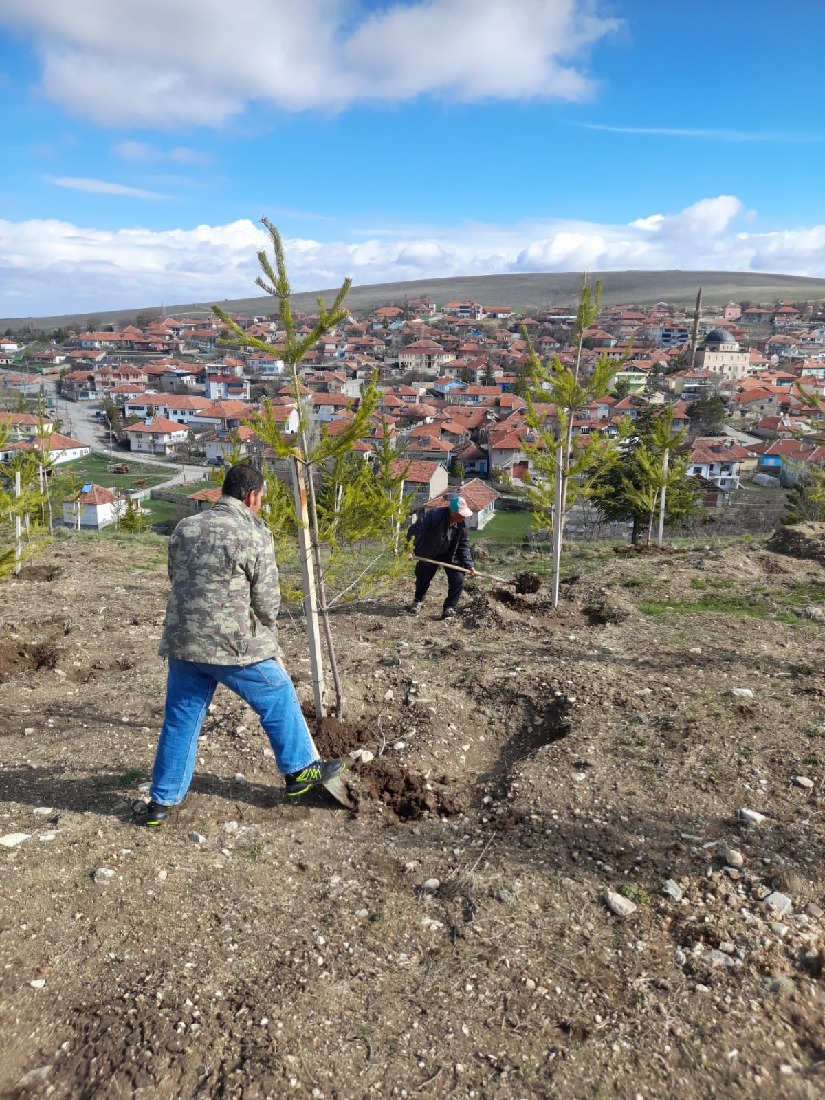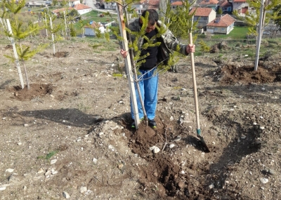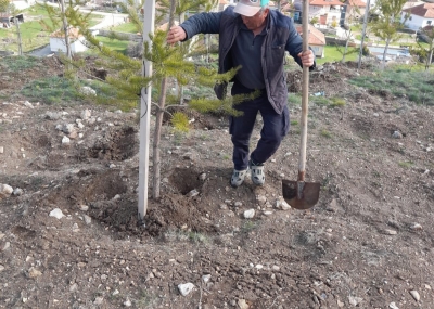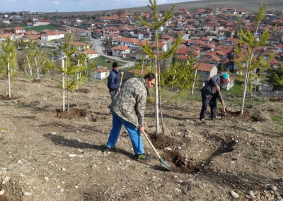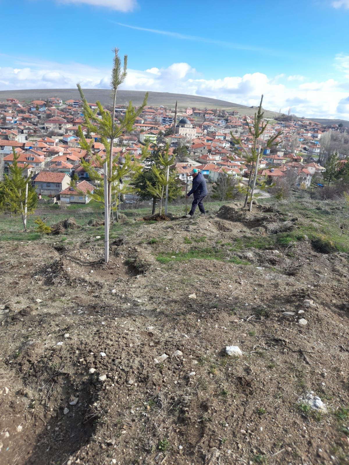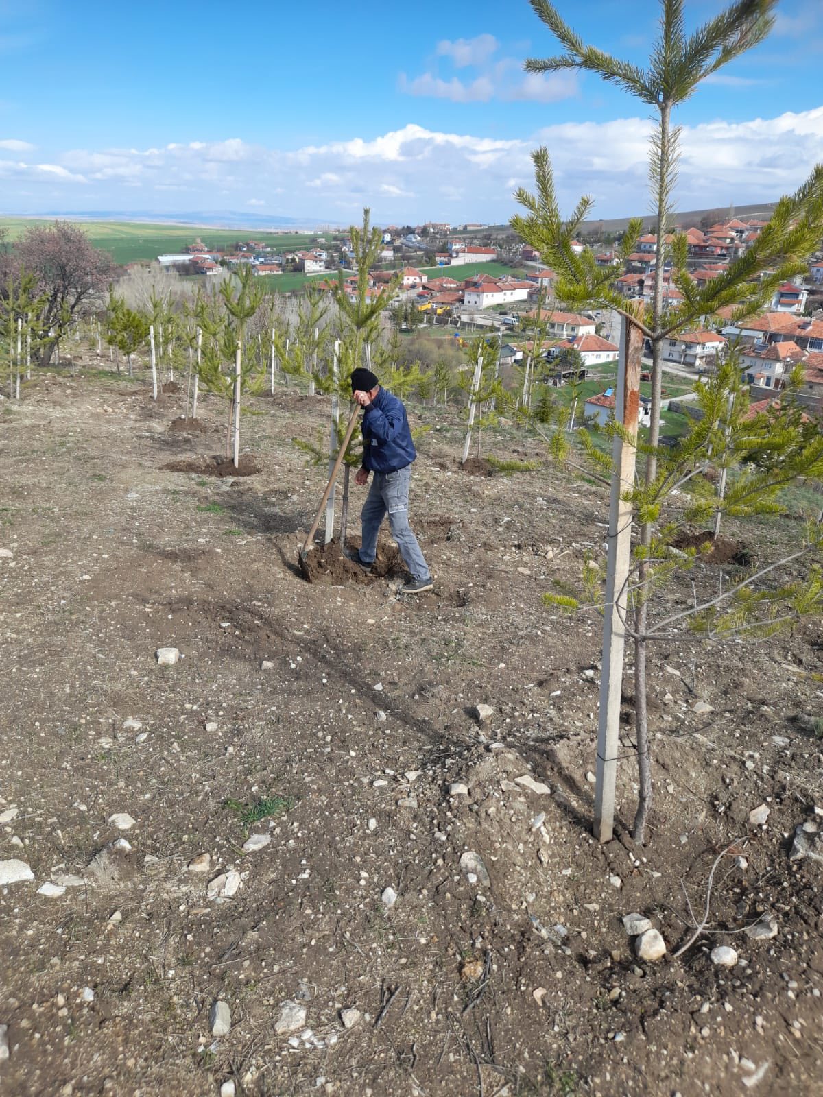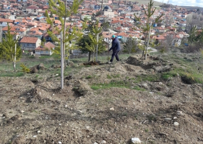 Konuklar Belediye Başkanımız Oğuzhan Karaca, bahar mevsiminin gelişiyle birlikte Bayraktepe mevkiinde toprakla buluşturulan büyük boy fidanların bakım ve gelişim süreçlerine yönelik çalışmaları başlattı.